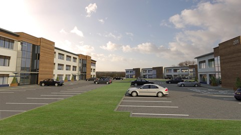 In total 10,000m² of office accommodation is provided on this site, comprising of four separate buildings varying in height from two to three storeys with flexible footprints and adaptable cores.